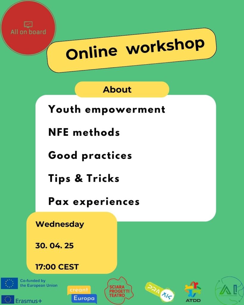 Overall, the online training was a meaningful and productive milestone in the All on Board project. It demonstrated the potential of digital platforms to facilitate impactful learning, connection, and collaboration across borders. Moreover, it reaffirmed the project’s commitment to fostering innovation, inclusivity, and active engagement in youth work through non-formal education.