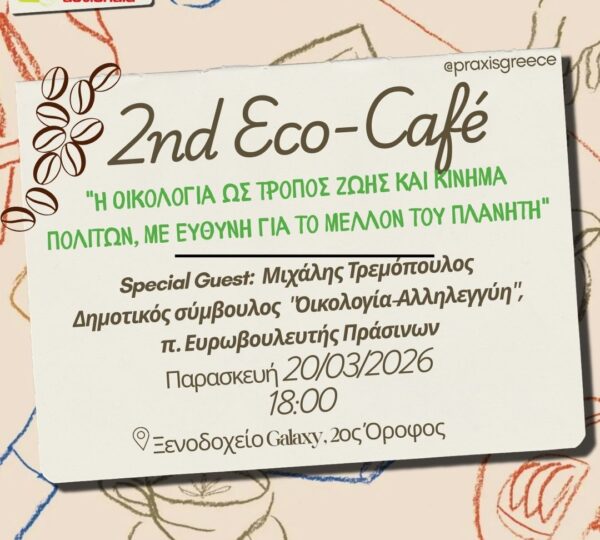 Την Παρασκευή 20 Μαρτίου, στις 18:00, πραγματοποιείται το 2ο Eco_Cafe με θέμα: